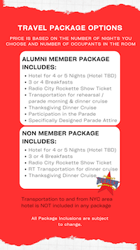 We are inviting all of our past MGAMB members to return to New York City to participate in the 100th Macy's Thanksgiving Day Parade. We are hoping for a very large turnout and if so, we would like for the MGAAMB to be a stand-alone band with its own specially designed banner. We want the MGAAMB to be recognized for our momentous 20th Anniversary during this special parade.